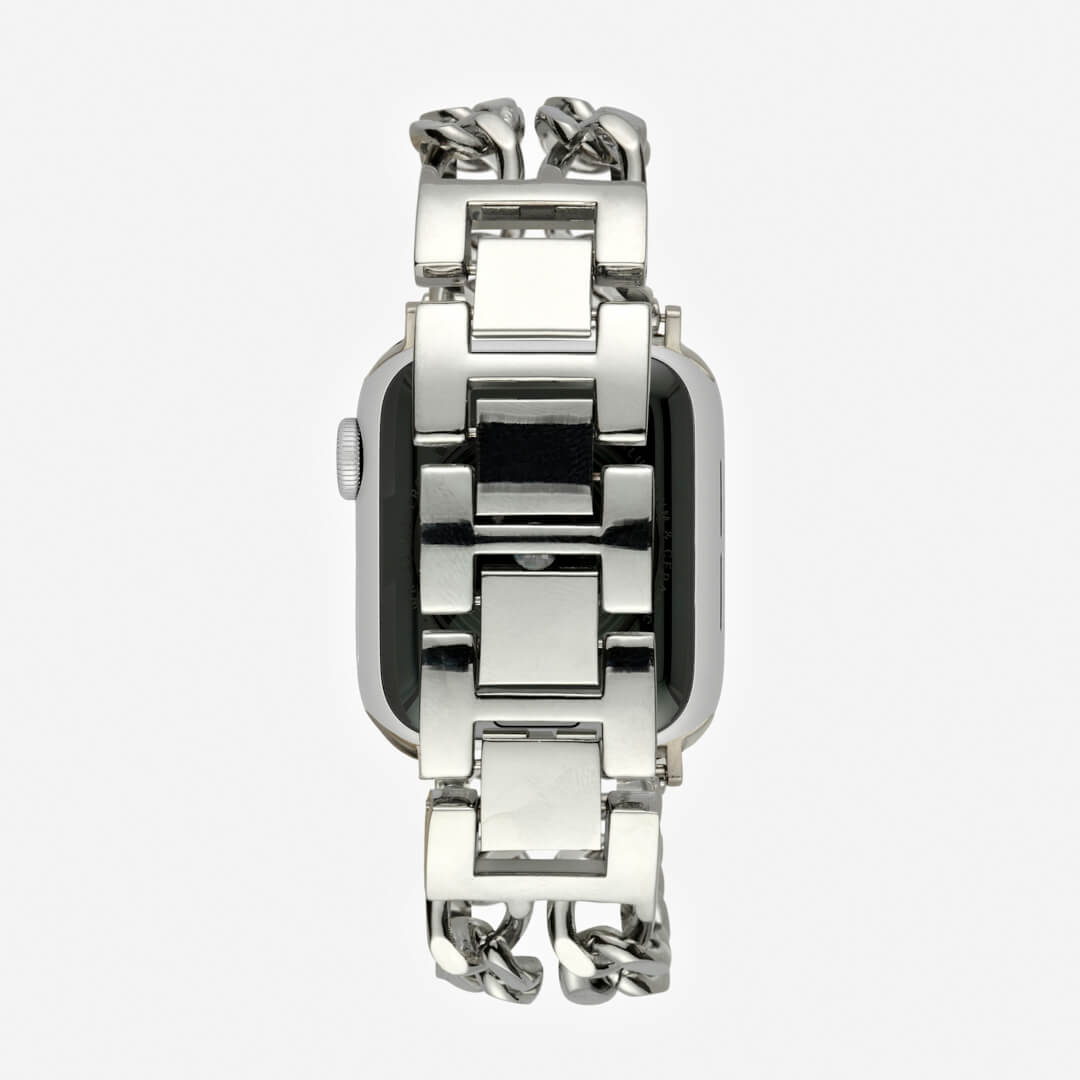 Crafted from premium stainless steel and twisted into elegant double link chains, this watch band works twice as hard to elevate your Apple Watch. Need to resize your band to make it smaller? Simply flick open the clasp links with your nail – no tool required! Dimensions Fits Wrists 150mm – 195mm Note: Product includ