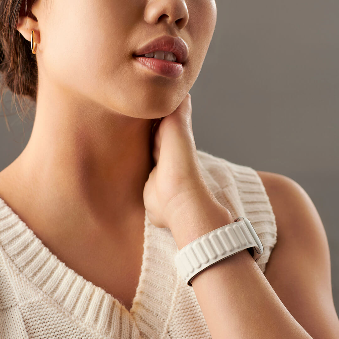 Crafted from cruelty free vegan leather, with a grained texture that will have you running your fingers over it all day, this gorgeous band will never leave your regular rotation. Flip it over and there's a silky smooth underside for maximum comfort and a strong secure magnetic core making it easy to tighten and resize