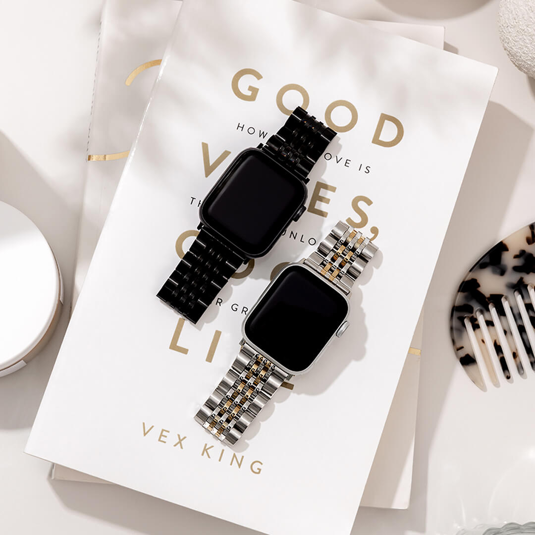 Our newest addition to our premium watchband collection, the Melbourne Stainless Steel Apple Watch Band in Silver Gold is the perfect waterproof band.