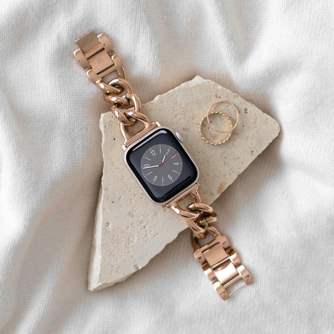 Meet your new favourite watch band. Perfect to add a touch of luxe to any outfit, wear it on repeat to the office, bar and everywhere in between. Crafted from premium stainless steel and plated in 18k Rose Gold to elevate your Apple Watch into a piece of fine jewellery. Our commitment to high quality ensures your brace