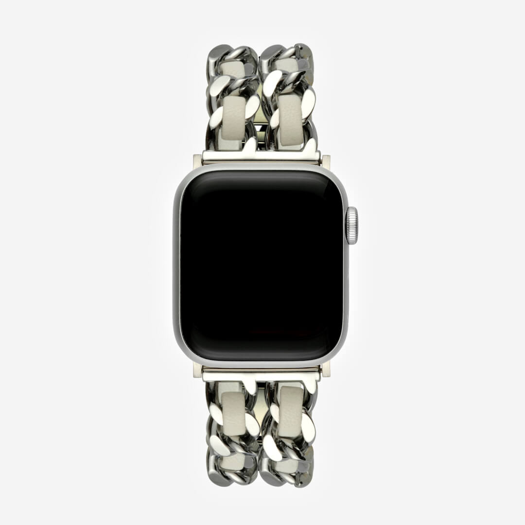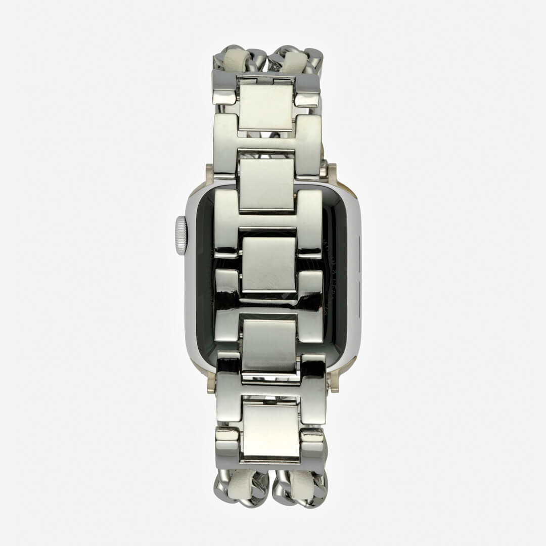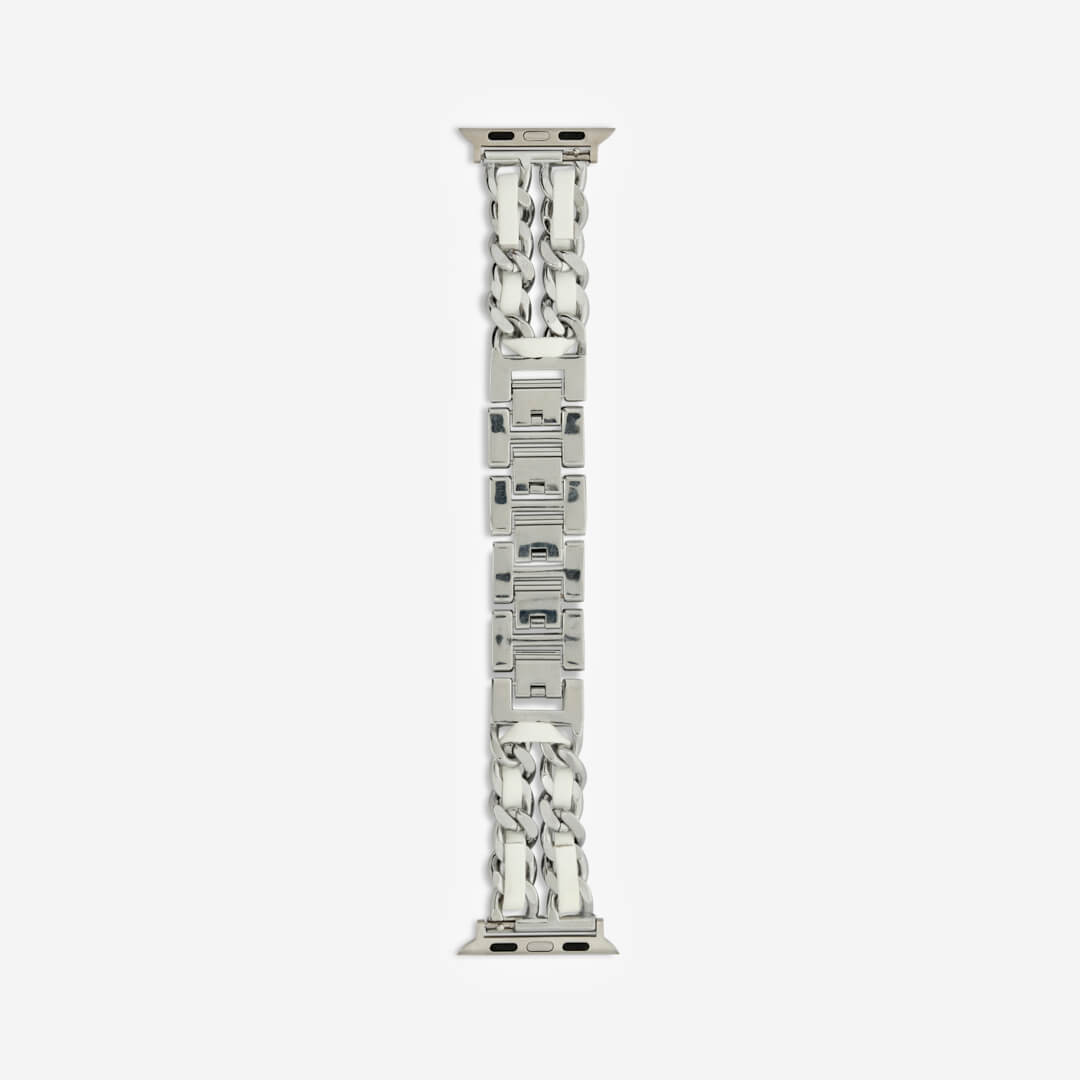 Meet your favourite new band. Crafted from premium stainless steel, twisted into elegant link chains and interwoven with cruelty free vegan leather.  Need to resize your band to make it smaller? Simply flick open the clasp links with your nail – no tool required!   Dimensions Fits Wrists 130mm – 200mm Note: Product inc